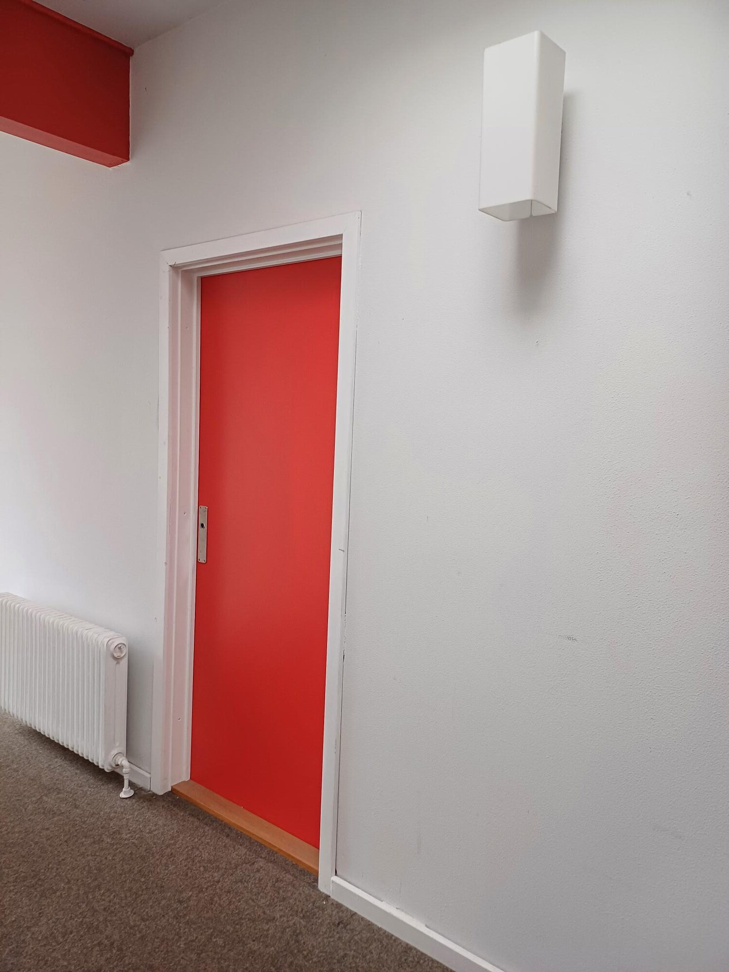 Fælles indgang via ejendommens hoveddør, entre afsnit som deles med anden lejer. Egen dør som ses på billedet nedenfor.